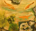 2002karpers en vijver apart gefotografeerd en op het doek in elkaar verweven.
